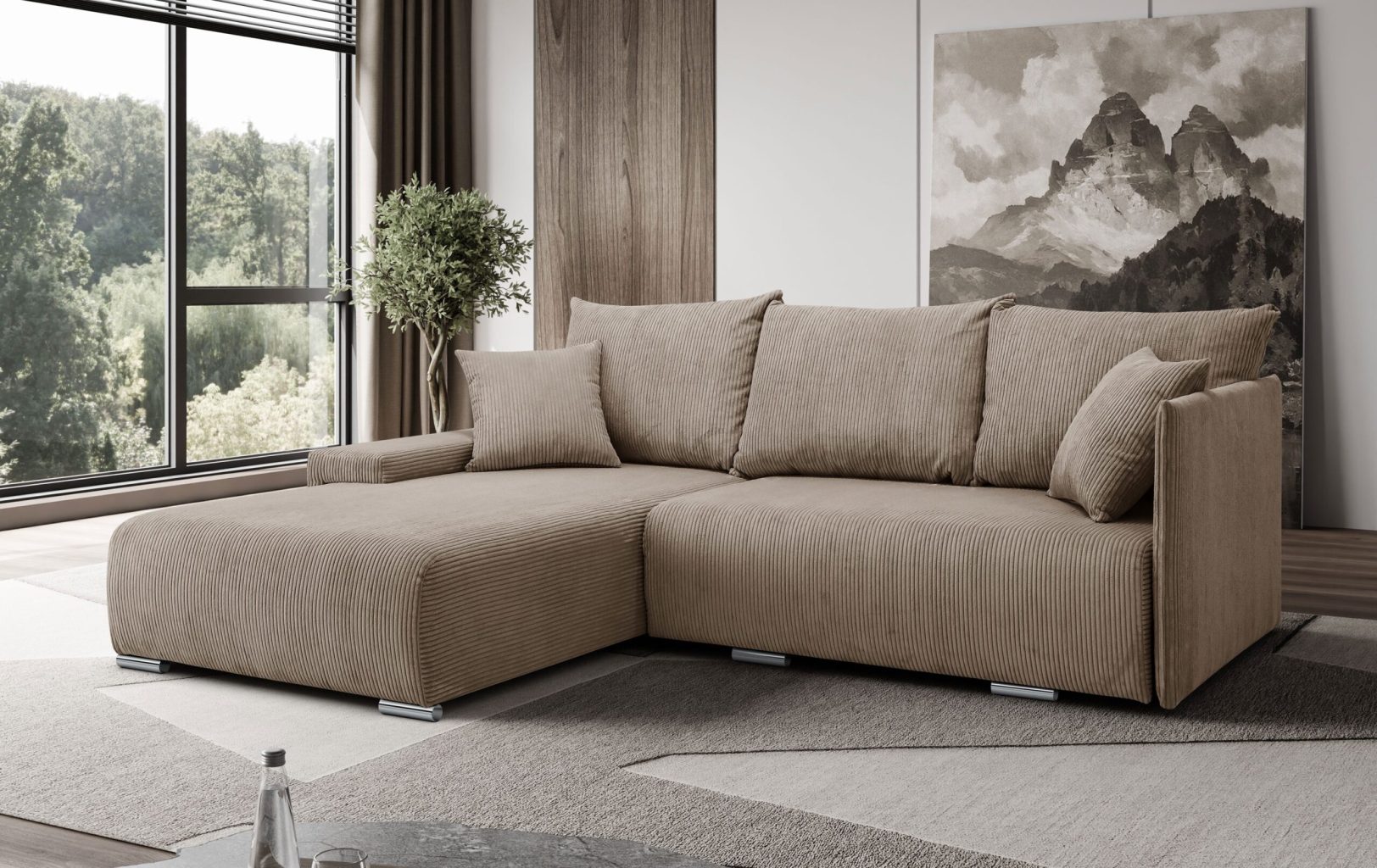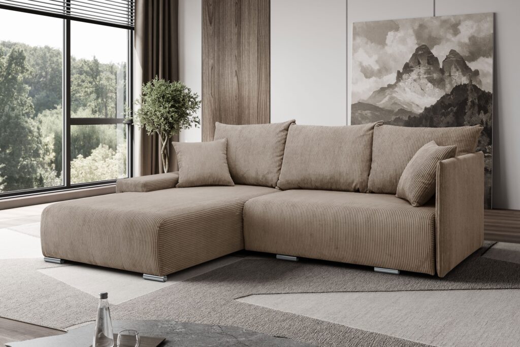 Narożnik Modena Pro z funkcją spania i pojemnikiem na pościel, tkanina Poso